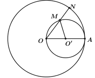 Cho đường tròn tâm (O,R). A là điểm trên đường tròn, dựng đường tròn tâm O’ đường kính OA. Gọi M là điểm nằm trên (O’), tia OM cắt đường tròn (O, R) tại N. Khi đó, kết luận nào sau đây đúng?
