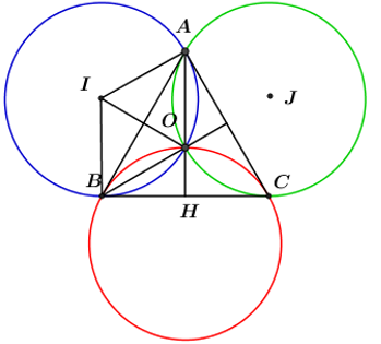 Cho tam giác đều \(ABC\) tâm \(O\) có cạnh bằng \(a\). Dựng ba đường tròn ngoại tiếp các tam