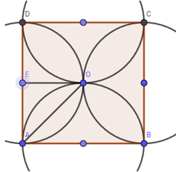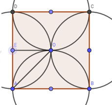 Tính diện tích hình hoa thị bốn cánh (như hình vẽ), cạnh hình vuông bằng