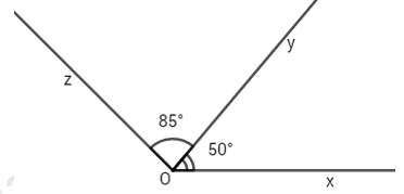 Trên cùng một nửa mặt phẳng bờ là tia Ox, vẽ \(\widehat{xOy}={{50}^{0}},\widehat{yOz}={{85}^{0}}\), em