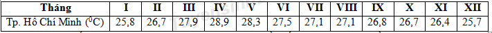 Cho bảng số liệu: NHIỆT ĐỘ TRUNG BÌNH CÁC THÁNG CỦA TP. HỒ CHÍ MINH Căn cứ vào bảng số