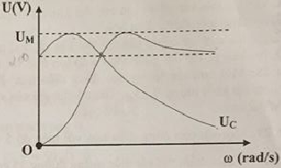 Đặt điện áp $u = 200c{\text{os}}\omega {\text{t}}\left( V \right)$ (ω thay đổi được) vào hai đầu đoạn mạch mắc nối tiếp gồm cuộn cảm thuần có độ tự cảm L, điện trở R và tụ điện có điện dung C, với CR2<2L. Điện áp hiệu dụng giữa hai bản tụ điện và điện áp hiệu dụng hai đầu cuộn cảm lần lượt là UC , UL phụ thuộc vào ω, chúng được biểu diễn bằng các đồ thị như hình vẽ bên, tương ứng với các đường UC, UL. Giá trị của UM trong đồ thị gần nhất với giá trị nào sau đây?