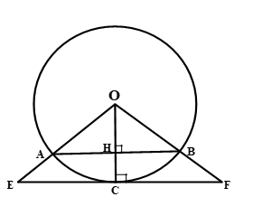 Cho đường tròn (O; 15cm), dây AB = 24 cm. Một tiếp tuyến song song với AB cắt các tia OA,OB theo thứ tự ở E, F. Tính độ dài đoạn EF ?