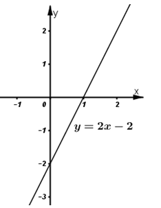 1) Trong hệ trục tọa độ Oxy hãy vẽ đồ thị hàm số \(y=2x-2.\)