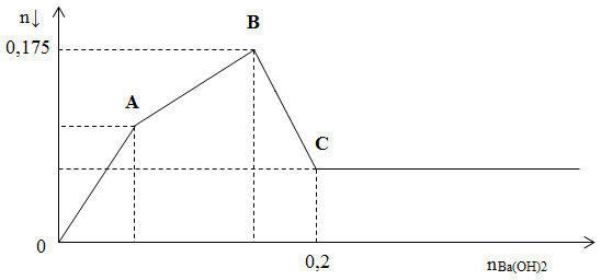 Cho từ từ đến dư dung dịch Ba(OH)2 vào dung dịch X chứa x mol Al2(SO4)3 và y mol AlCl3. Tổng số mol kết tủa thu được phụ thuộc vào số mol Ba(OH)2 theo đồ thị sau: