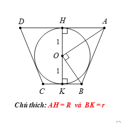 Áp dụng công thức tính thể tích khối nón cụt và bán kính đường tròn nội tiếp hình thang cân