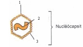 Chọn từ hoặc cụm từ phù hợp điền vào các số 1, 2, 3 để chú thích cho hình cấu tạo virut trần dưới đây: