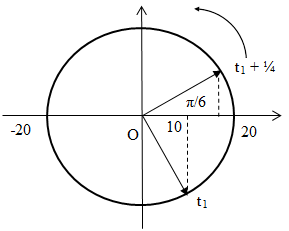Một vật dao động điều hòa theo phương ngang với phương trình: x = 20cos2πt (cm). Tại thời điểm t1 vật có li độ là 10 cm và đang chuyển động theo chiều dương thì li độ sau thời điểm t1 một khoảng 1/4 (s) là: