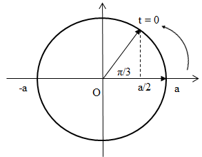 Một vật dao động điều hòa theo phương ngang trên đoạn thẳng dài 2a với chu kì T = 2s. Chọn gốc thời gian là lúc vật đi qua vị trí x = a/2 theo chiều âm của quỹ đạo. Phương trình dao động của vật là: