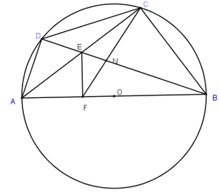 Cho tứ giác ABCD nội tiếp đường tròn đường kính AB. Hai đường chéo AC và BD cắt nhau tại E, F là hình chiếu vuông góc của E trên AB.