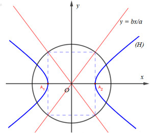 Lập phương trình chính tắc của hypebol (H) biết (H) có đỉnh \({A_2}(3;0)\) và đường tròn ngoại