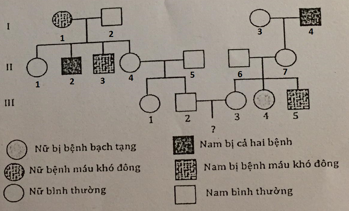 Ở người, alen A quy định da bình thường trội hoàn toàn so với alen a quy định da bạch tạng. Bệnh máu khó đông do alen lặn b nằm trên vùng không tương đồng của nhiễm sắc thể giới tính X, alen B quy định máu bình thường.