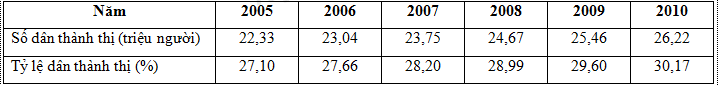Số dân thành thị và tỷ lệ dân thành thị của nước ta qua các năm