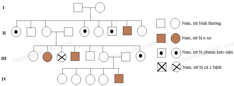 Cho phả hệ sau: Cho biết các gen quy định các tính trạng nằm trên các cặp nhiễm sắc thể