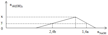 Cho từ từ đến dư dung dịch NaOH 0,1M vào 300 ml dung dịch hỗn hợp gồm H2SO4 a mol/lít và Al2(SO4)3 b mol/lít. Đồ thị dưới đây mô tả sự phụ thuộc của số mol kết tủa Al(OH)3 vào số mol NaOH đã dùng.