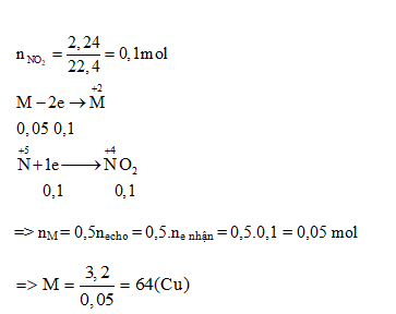 Cho 3,2 gam kim loại A có hóa trị II không đổi khi tác dụng với dung dịch HNO3 đặc thu được 2,24 lít khí màu nâu đỏ. Kim loại A là
