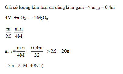 Để oxi hoá hoàn toàn một kim loại M có hoá trị không đổi (trong hợp chất) thành oxit phải dùng một lượng oxi bằng 40% lượng kim loại đã dùng. M là: