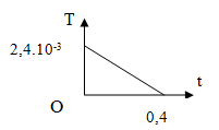 Một khung dây cứng, phẳng diện tích 25cm2, gồm 10 vòng dây, đặt trong từ trường đều, mặt phẳng khung dây vuông góc vuông góc với các đường cảm ứng từ. Cảm ứng từ biến thiên theo thời gian như đồ thị hình vẽ. Tính độ biến thiên của từ thông qua khung dây kể từ t = 0 đến t = 0,4s.