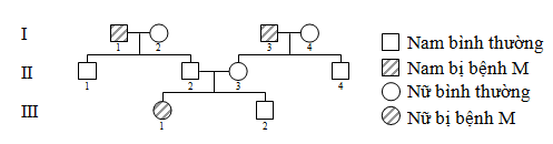 Khảo sát sự di truyền bệnh M ở người qua ba thế hệ như sau :