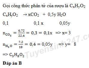 Đốt cháy hoàn toàn 0,1 mol rượu X có 2 nhóm OH thu được 6,72 lít khí CO2 (ĐKTC) và 7,2 gam H2O.