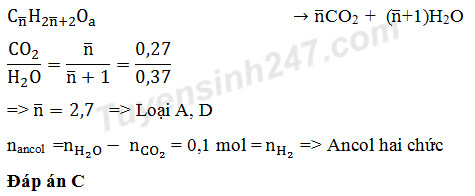 Đốt cháy hoàn toàn m gam hỗn hợp X gồm 2 ancol A, B thuộc cùng dãy đồng đẳng thu được 6,048