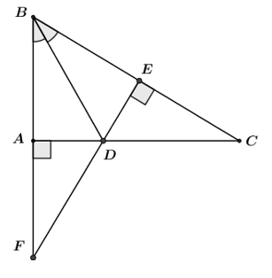 Cho tam giác ABC vuông tại A có BD là phân giác, kẻ DE vuông góc với BC (E thuộc BC). Trên tia đối