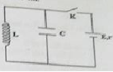 Cho mạch điện như hình vẽ bên, nguồn điện một chiều có suất điện động E không đổi và điện trở trong r, cuộn dây thuần cảm L và tụ điện có điện dung C = 2,5.10-7 F. Ban đầu khoá K mở, tụ chưa tích điện. Đóng khoá K, khi mạch ổn định thì mở khoá K. Lúc này trong mạch có dao động điện từ tự do với chu kì bằng π.10-6 s và hiệu điện thế cực đại trên tụ bằng 2E. Giá trị của r gần với giá trị nào nhất sau đây?