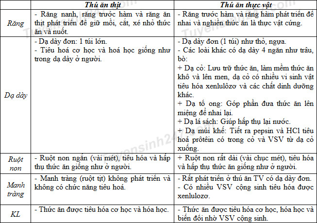 Đặc điểm nào dưới đây không có ở thú ăn thịt?