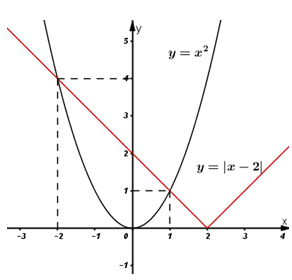 Diện tích hình phẳng giới hạn bởi các đồ thị \(y={{x}^{2}}\) và \(y=\left| x-2 \right|\)