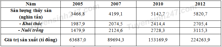 Nhận định nào sau đây không đúng về tình hình sản xuất thủy sản nước ta giai đoạn 2005 – 2012?