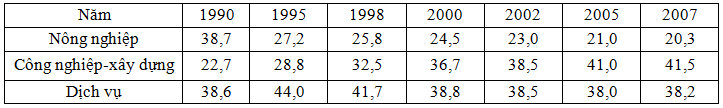 Cho bảng số liệu sau và yêu cầu vẽ biểu đồ: CƠ CẤU GDP PHÂN THEO KHU VỰC KINH TẾ cần vẽ biểu đồ gì cho thích hợp nhất: