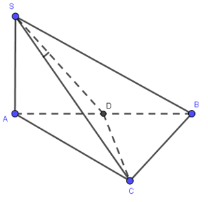 Cho hình chóp S.ABC có đáy ABC đều cạnh a, \(SA\bot (ABC),\,\,SA=\frac{a\sqrt{2}}{2}\). Tính góc giữa SC và mặt phẳng (SAB).