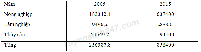 Cho bảng số liệu sau: Giá trị sản xuất nông, lâm và thủy sản của nước ta (theo giá thực