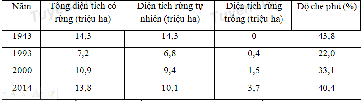 Cho bảng số liệu: DIỆN TÍCH RỪNG CỦA VIỆT NAM QUA CÁC NĂM (Nguồn: Niên giám thống kê Việt