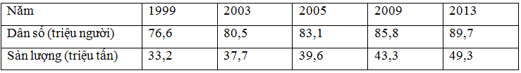 Cho bảng số liệu sau: Dân số và sản lượng lương thực nước ta giai đoạn 1999 – 2013 Sản