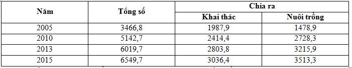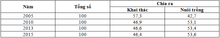 Cho bảng số liệu: SẢN LƯỢNG THỦY SẢN NƯỚC TA GIAI ĐOẠN 2005 – 2015 (Đơn vị: nghìn
