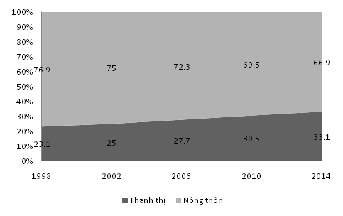 Cơ cấu dân số theo thành thị-nông thôn ở nước ta giai đoạn 1998-2014.