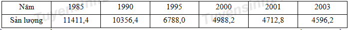 Để thể hiện sự thay đổi sản lượng cá khai thác của Nhật Bản qua các năm từ 1985-2003 theo bảng số liệu rên, biểu đồ nào sau đây là thích hợp nhất?