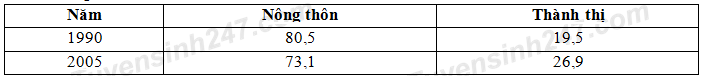 Dân số nước ta, giai đoạn 1990 – 2005 (Đơn vị:%)