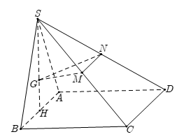 Gọi H là trung điểm của AB \(\Rightarrow \,\,SH\bot \left( ABCD \right).\)