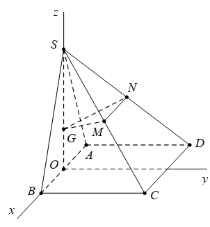 Gọi \({{\overrightarrow{n}}_{1}};{{\overrightarrow{n}}_{2}}\) lần lượt là các VTPT của mặt phẳng \(\left( GMN \right);\left( ABCD \right)\Rightarrow \cos \left( \left( GMN \right);\left( ABCD \right) \right)=\frac{\left| \overrightarrow{{{n}_{1}}}.\overrightarrow{{{n}_{2}}} \right|}{\left| \overrightarrow{{{n}_{1}}} \right|.\left| \overrightarrow{{{n}_{2}}} \right|}\)