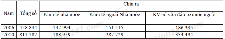 Cho bảng số liệu: GIÁ TRỊ SẢN XUẤT CÔNG NGHIỆP PHÂN THEO THÀNH PHẦN KINH TẾ (Đơn vị: tỉ