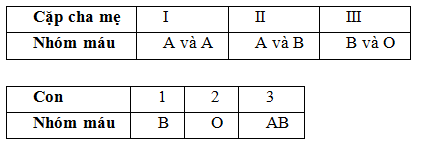 Có 3 đứa trẻ sơ sinh bị nhầm lẫn ở một bệnh viện .Sau khi xem xét các dữ kiện, hãy cho biết tập hợp (cặp cha mẹ - con ) nào dưới đây là đúng?