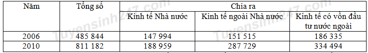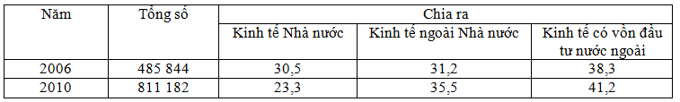 Cho bảng số liệu: GIÁ TRỊ SẢN XUẤT CÔNG NGHIỆP PHÂN THEO THÀNH PHẦN KINH TẾ (Đơn vị: tỉ