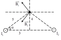 Hai dây dẫn thẳng dài đặt song song, cách nhau 6 cm trong không khí. Trong hai dây dẫn có hai dòng điện cùng chiều có cùng cường độ I1 = I2 =2 A. Cảm ứng từ tại điểm M cách mỗi dây 5 cm là