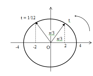 Một vật dao động điều hoà có tần số 2 Hz, biên độ 4 cm. Ở một thời điểm nào đó vật chuyển động theo chiều âm qua vị trí có li độ 2 cm thì sau thời điểm đó 1/12 (s) vật chuyển động theo