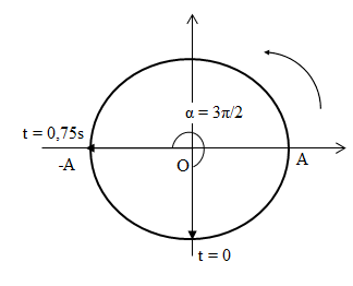 Chất điểm dao động điều hòa theo phương thẳng đứng với phương trình x = Acos(ωt – π/2) cm. Khoảng thời gian chất điểm đi từ vị trí thấp nhất đến vị trí cao nhất là 0,5 (s). Sau khoảng thời gian t = 0,75 (s) kể từ lúc bắt đầu dao động (t = 0), chất điểm đang ở vị trí có li độ
