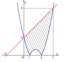 Cho hình phẳng \(\left( H \right)\) giới hạn bởi các đường \(y=\left| {{x}^{2}}-4x+3 \right|,\,\,y=x+3\)