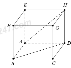 Cho hình lập phương \(ABCD.EFGH\) cạnh bằng \(a.\) Khoảng cách giữa hai đường thẳng \(AH\) và \(BD\) bằng