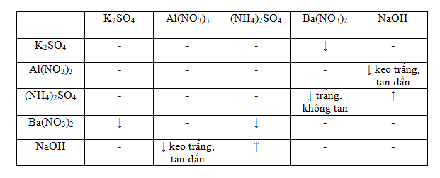 Không dùng hóa chất, có thể phân biệt mấy chất trong dãy các dung dịch K2SO4, Al(NO3)3, (NH4)2SO4, Ba(NO3)2 và NaOH?